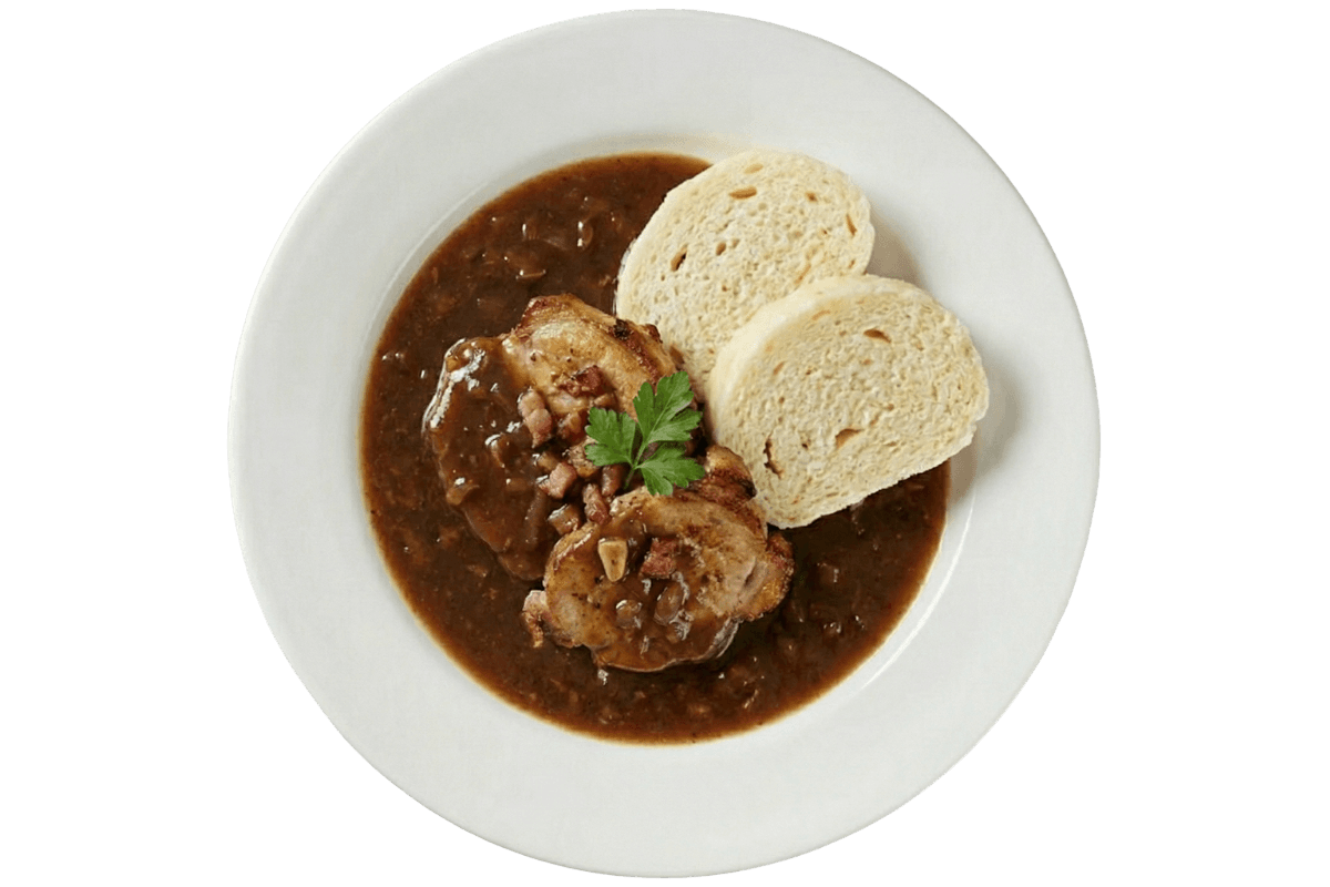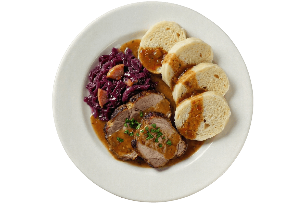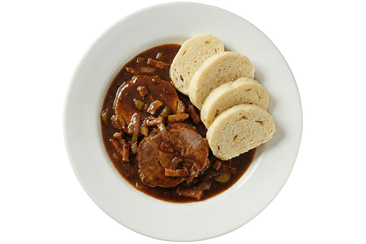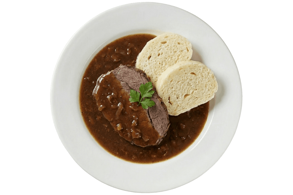 Přírodní hovězí pečeně, houskový knedlík 2ks/rýže/brambor
