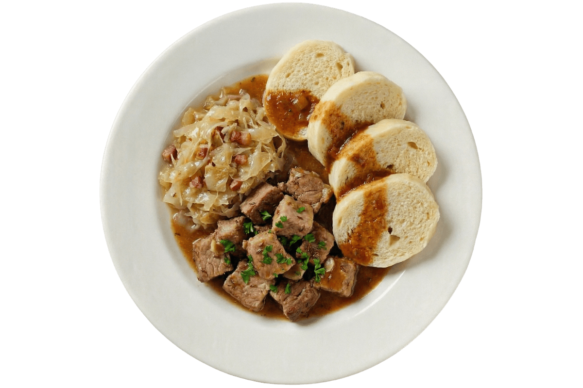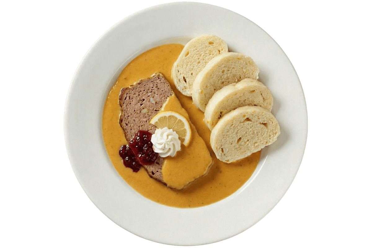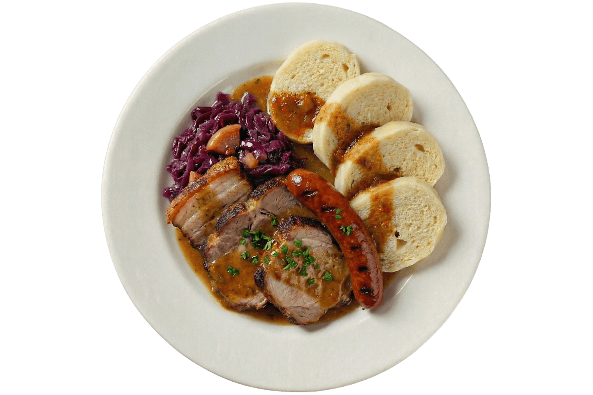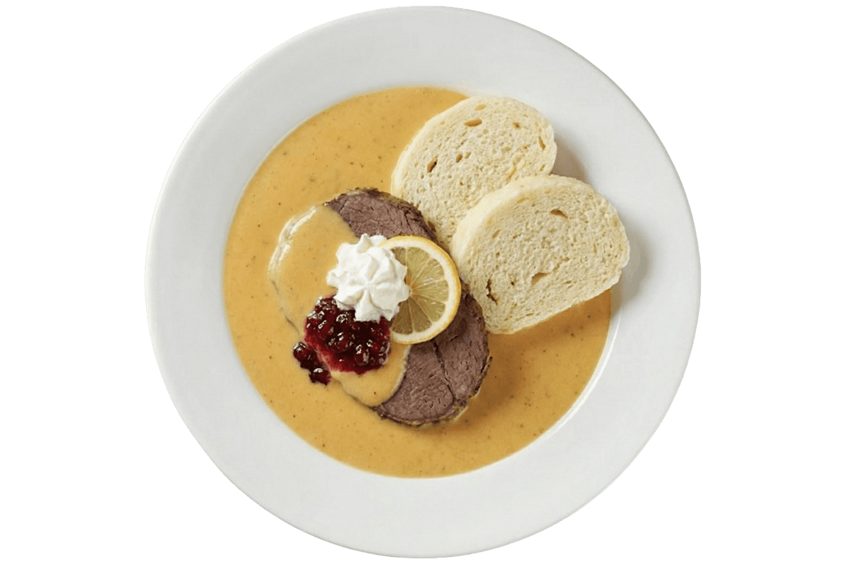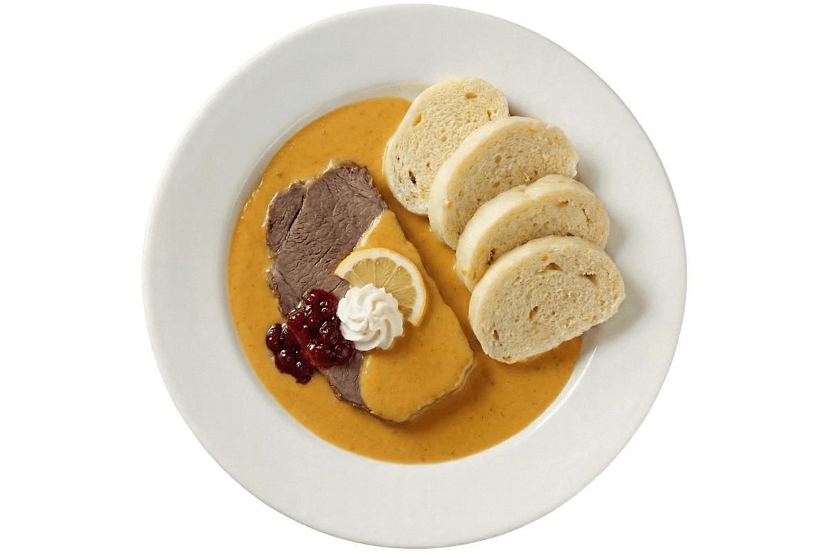 Přírodní hovězí pečeně, houskový knedlík 2ks/rýže/brambor