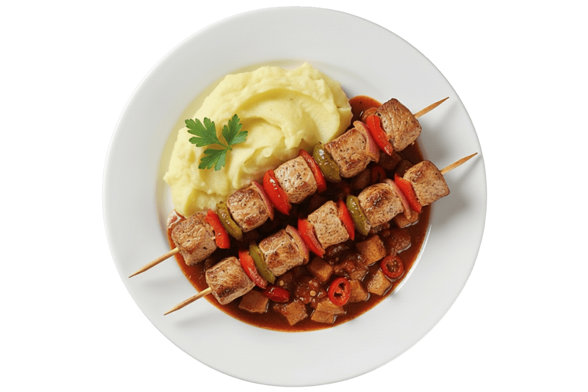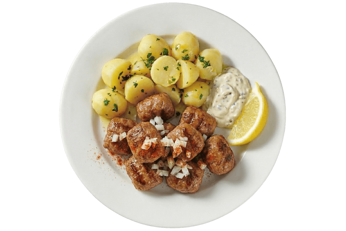 Čevabčiči, brambor, tatarská omáčka, obloha