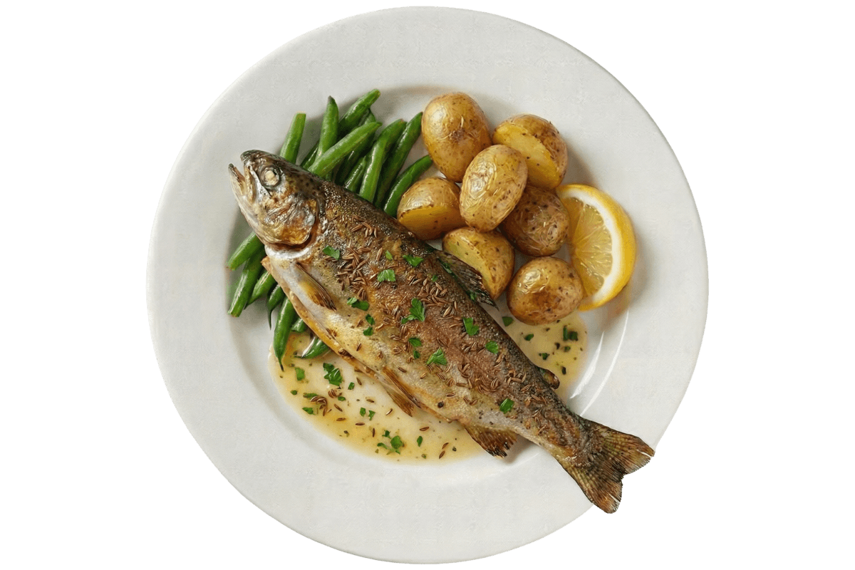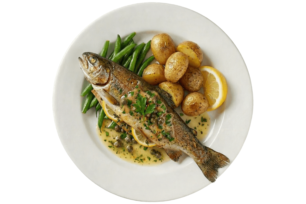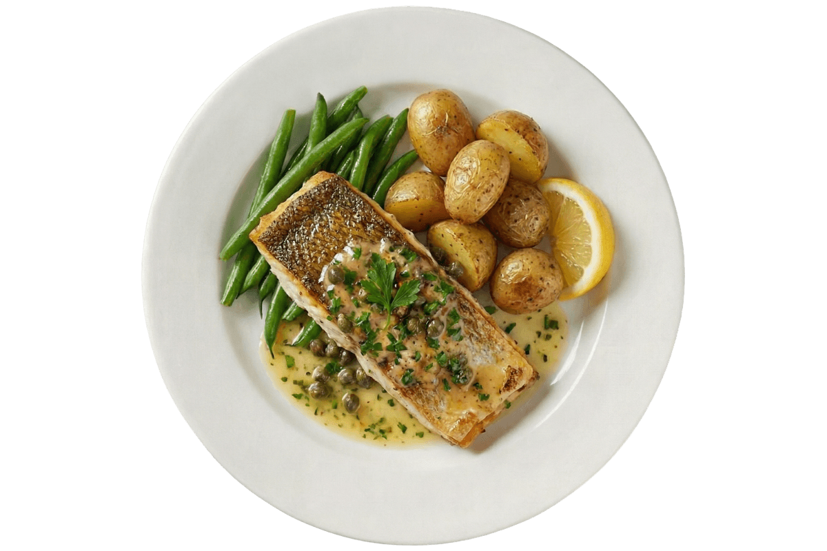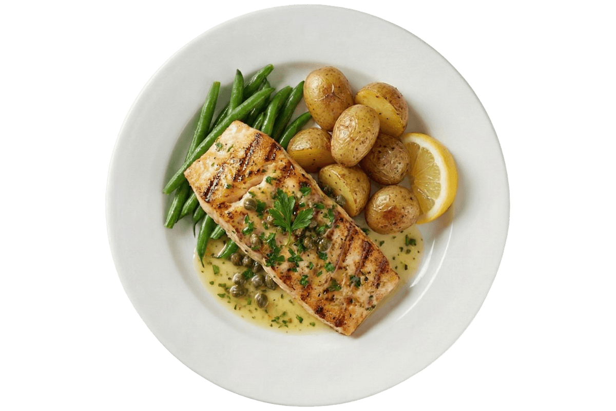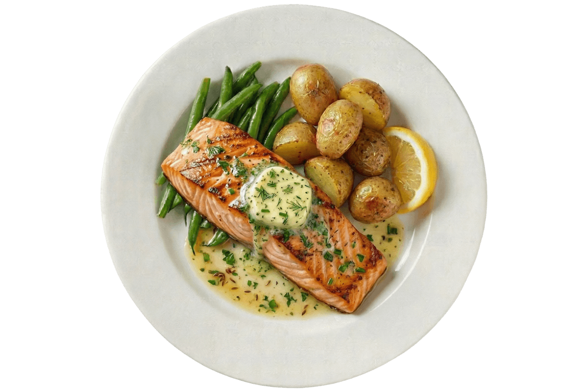 Filet z norského lososa na bylinkovém másle, citrón, velká obloha